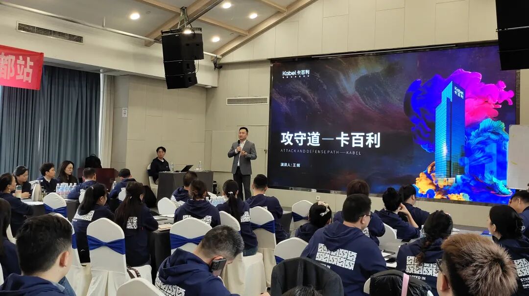 活動伊始,由卡百利(中國)王輝總裁作《攻守道》主題分享,王總立足于當下家裝建材市場的困境與趨勢,向在座的經銷商家人們提出“攻守道”的戰(zhàn)略解決方案,即“攻無不克”,產品矩陣布局,主供渠道;“以守為攻”,打造凈醛藝術漆超級品類;“道行合一”,明道取勢優(yōu)術,注重“人貨場”。